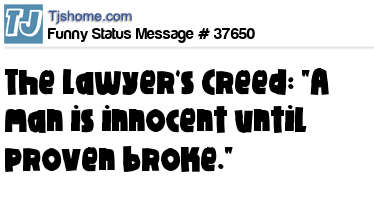 X says The Lawyer's Creed: "A man is innocent until proven broke."