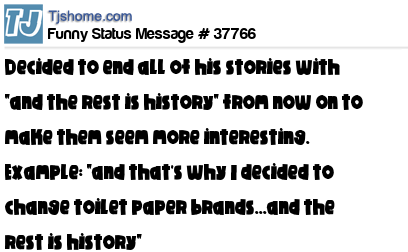 X has decided to end all of his stories with "and the rest is history" from now on to make them seem more interesting. Example: "and that's why I decided to change toilet paper brands...and the rest is history"