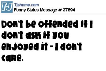 X Don't be offended if I don't ask if you enjoyed it - I don't care.