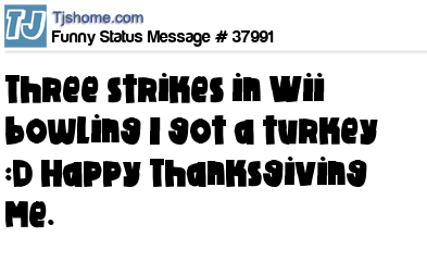 - # 37965 If three strikes in bowling is a turkey, then I wish you a happy XXX day tomorrow.