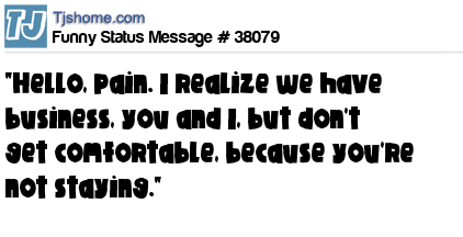 X  "Hello, pain. I realize we have business, you and I, but don't get comfortable, because you're not staying."
