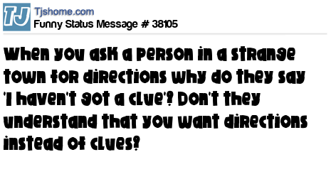 X is When you ask a person in a strange town for directions why do they say 'I haven't got a clue'? Don't they understand that you want directions instead of clues?