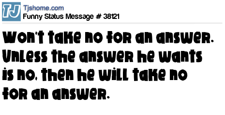 X won't take no for an answer. Unless the answer he wants is no, then he will take no for an answer.
