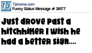 - # 98656 Every time I drive past a hitchhiker I feel kinda bad thinking maybe they're just liking my status.