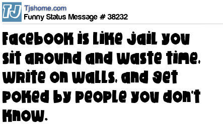 - # 50805 Facebook is like jail, you sit around and waste time, have a profile picture, write on walls, and get pocked my guys you don't really know.