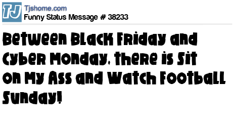 X Between Black Friday and Cyber Monday, there is Sit on My Ass and Watch Football Sunday!