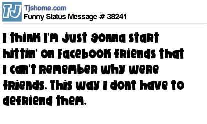 X I think I'm just gonna start hittin' on Facebook friends that I can't remember why were friends. This way I dont have to defriend them.