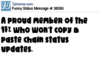 X is a proud member of the 97% who won't copy & paste chain status updates.