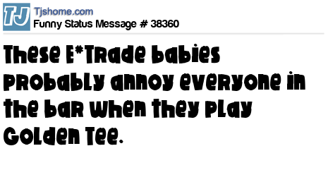 X These E*Trade babies probably annoy everyone in the bar when they play Golden Tee.