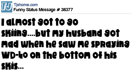 X I almost got to go skiing....but my husband got mad when he saw me spraying WD-40 on the bottom of his skis...