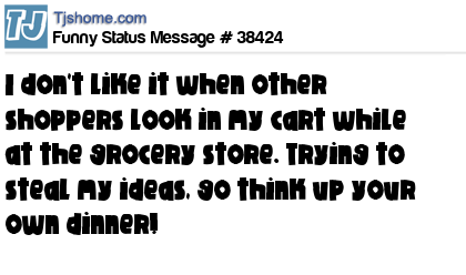 X I don't like it when other shoppers look in my cart while at the grocery store. Trying to steal my ideas, go think up your own dinner!
