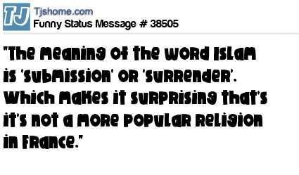 X is "The meaning of the word Islam is 'submission' or 'surrender'. Which makes it surprising that's it's not a more popular religion in France."