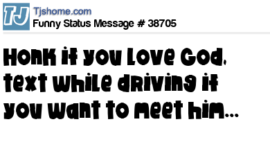 - # 26360 Honk if you love Jesus, text while driving if you want to meet him.
