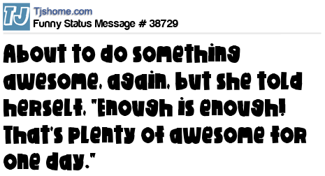 - # 29465 I was about to do something awesome, again, but I told myself, "Enough is enough! That's plenty of awesome for one day."
