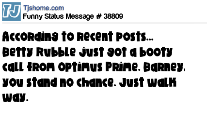 X According to recent posts... Betty Rubble just got a booty call from Optimus Prime. Barney, you stand no chance. Just walk way.