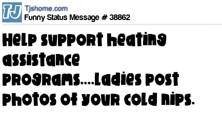 - # 38954 Join the fight against high heating cost by supporting your local heating assistance program. Change your profile pic to a pic of your cold nipples and together we can stop the winter cold. The goal is to turn Facebook into all nipples by Dec 21st.
