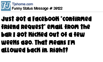 X  Just got a Facebook "confirmed friend request" email from the bar I got kicked out of a few weeks ago. That means I'm allowed back in, right?