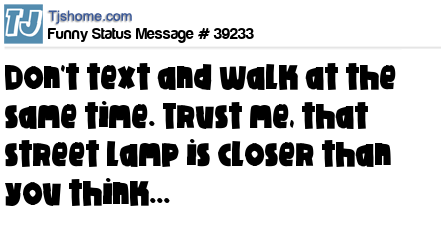 - # 21547 PUBLIC SERVICE ANNOUNCEMENT: Don't text and walk at the same time! Trust me, that street lamp... is closer than you think!