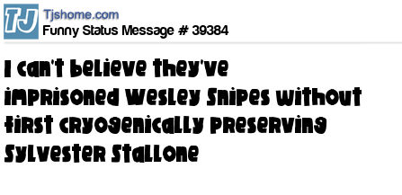 X I can't believe they've imprisoned Wesley Snipes without first cryogenically preserving Sylvester Stallone