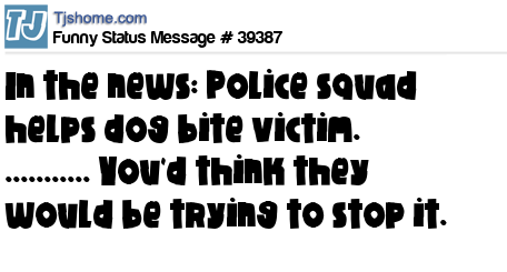 X  In the news: Police squad helps dog bite victim. ........... You'd think they would be trying to stop it.