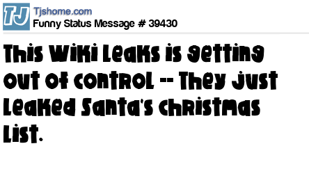 - # 173279 This Wiki Leaks is getting out of control -- They just leaked Santa's Christmas list.