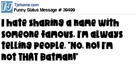 X I hate sharing a name with someone famous. I'm always telling people, "No, no! I'm not THAT Batman!"