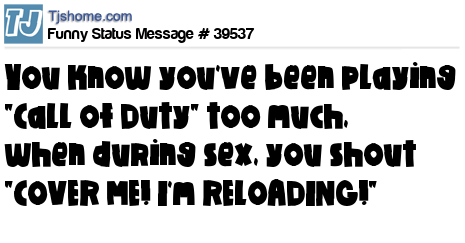 X You know you've been playing "Call of Duty" too much, when during sex, you shout "COVER ME! I'm RELOADING!"