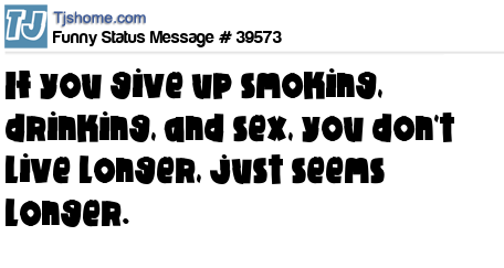 - # 29361 I gave up smoking,I gave up drinking,I try to exercise,I try to eat right......apparently this means I will live longer but the trouble is I am boreeeeed