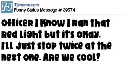 - # 60452 Officer I know I ran that red light but its okay I'll just stop twice at the next one. Are we cool?