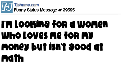 - # 13791 I wanna find a girl who loves me for my money, but doesnt understand math.
