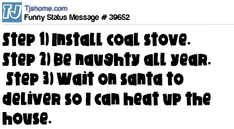 X is Step 1) Install coal stove. Step 2) Be naughty all year. Step 3) Wait on santa to deliver so I can heat up the house.