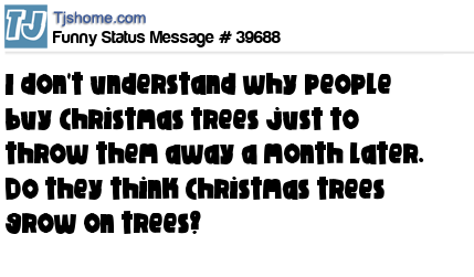 - # 173280 I don't understand why people buy Christmas trees just to throw them away a month later. Heck ... Do they think Christmas trees grow on trees?
