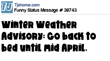 X  Winter Weather Advisory: Go back to bed until mid April.