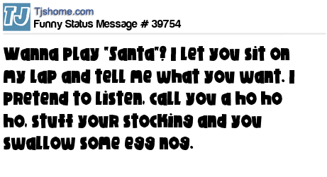 X  Wanna play "Santa"? I let you sit on my lap and tell me what you want. I pretend to listen, call you a ho ho ho, stuff your stocking and you swallow some egg nog.