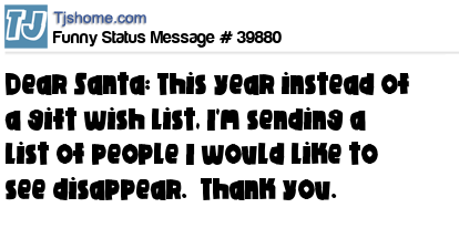 X Dear Santa: This year instead of a gift wish list, I'm sending a list of people I would like to see disappear. Thank you.