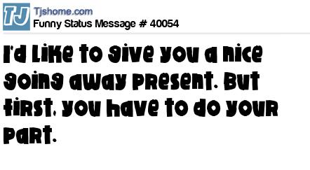 X says I'd like to give you a nice going away present. But first, you have to do your part.