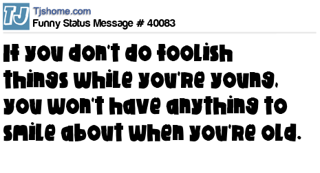 X If you don't do foolish things while you're young, you won't have anything to smile about when you're old.
