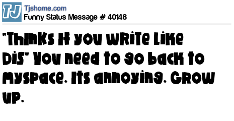 X is "ThInKs If you wRiTe like DiS" You need to go back to myspace. Its annoying. Grow up.