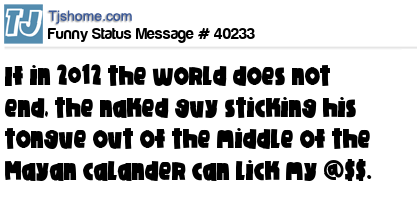 X says if in 2012 the world does not end, the naked guy sticking his tongue out of the middle of the Mayan calander can lick my @$$.
