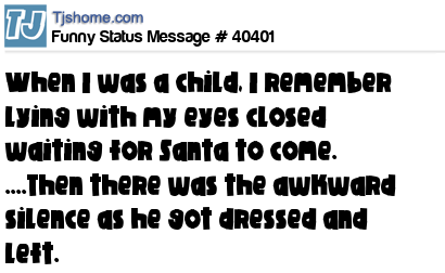 - # 33704 When I was a child, I remember lying with my eyes closed waiting for Santa to come. ....Then there was the awkward silence as he got dressed and left.