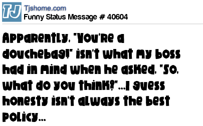 X Apparently, "You're a douchebag!" isn't what my boss had in mind when he asked, "So, what do you think?"...I guess honesty isn't always the best policy...