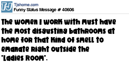 X The women I work with must have the most disgusting bathrooms at home for that kind of smell to emanate right outside the "Ladies Room".