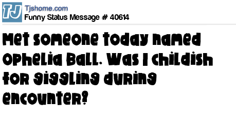 X  Met someone today named Ophelia Ball. Was I childish for giggling during encounter?