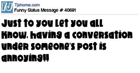 - # 74345 That annoying moment when two people start a conversation on YOUR Facebook status.