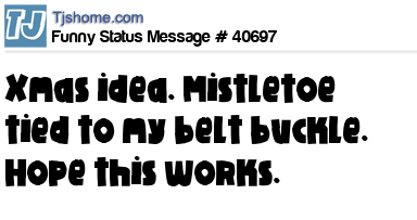 - # 119820 wore my mistletoe belt buckle out last night. Met a girl with a mistletoe belly button piercing.. Wedding is next month."