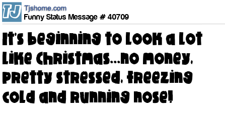 X says it's beginning to look a lot like Christmas...no money, pretty stressed, freezing cold and running nose!