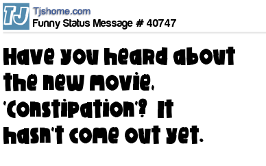 X Have you heard about the new movie, 'Constipation'? It hasn't come out yet.