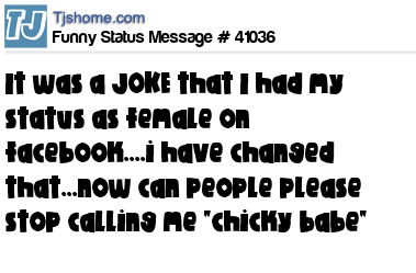 X is it was a JOKE that I had my status as female on facebook....i have changed that...now can people please stop calling me "chicky babe"