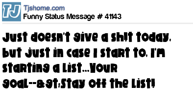 X just doesn't give a sh!t today, but just in case I start to, I'm starting a list...Your goal-->Stay off the list!