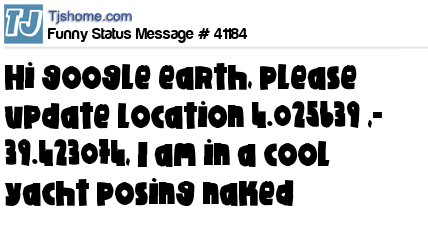 X is Hi google earth, please update location 4.025639 ,- 39.423074, I am in a cool yacht posing naked